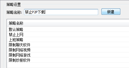 进入软件之后,在主界面的左边有一个“策略设置”的选项,新建一个名为“禁止P2P下载”的策略。
